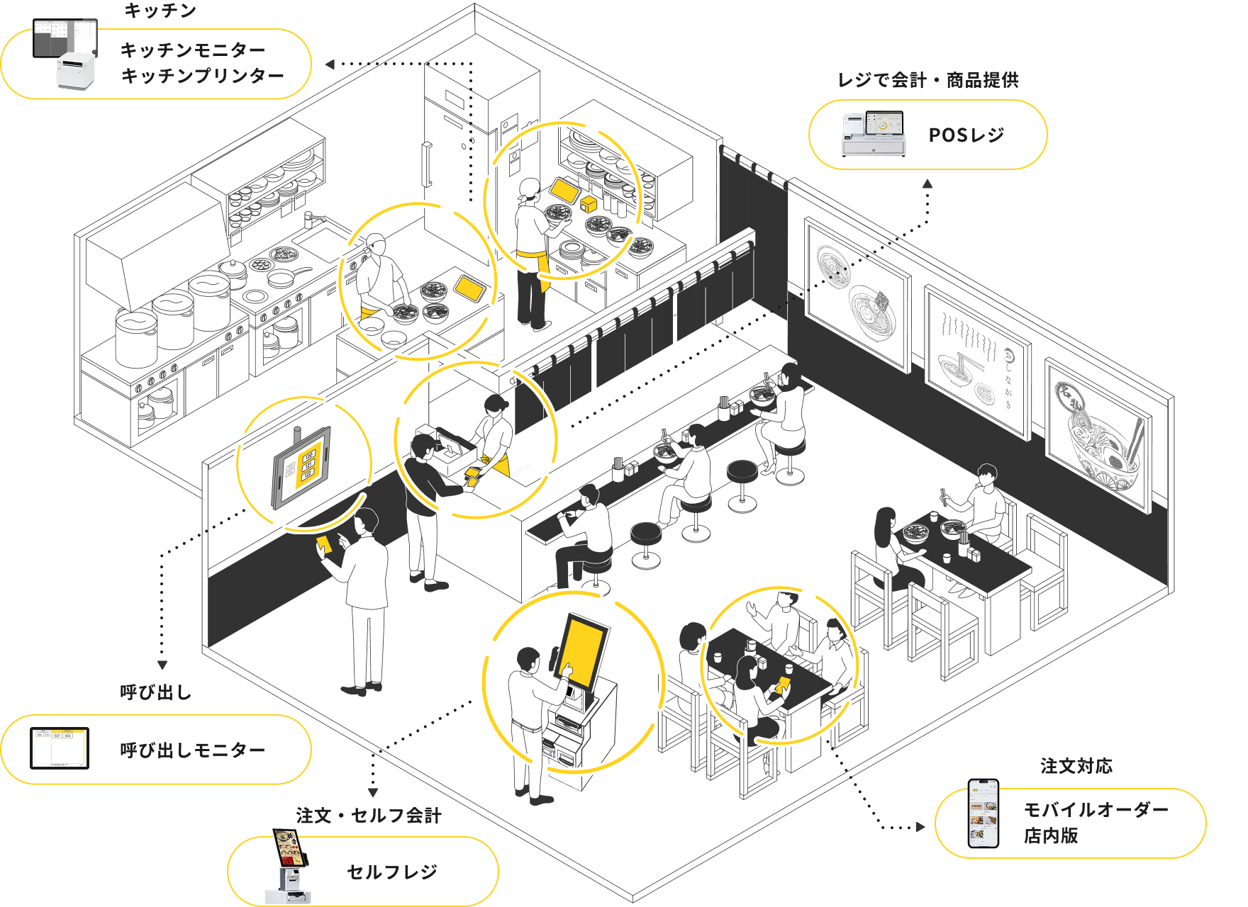 混雑時でもスムーズな注文・提供を実現し、回転率と顧客満足度を高めます。 -