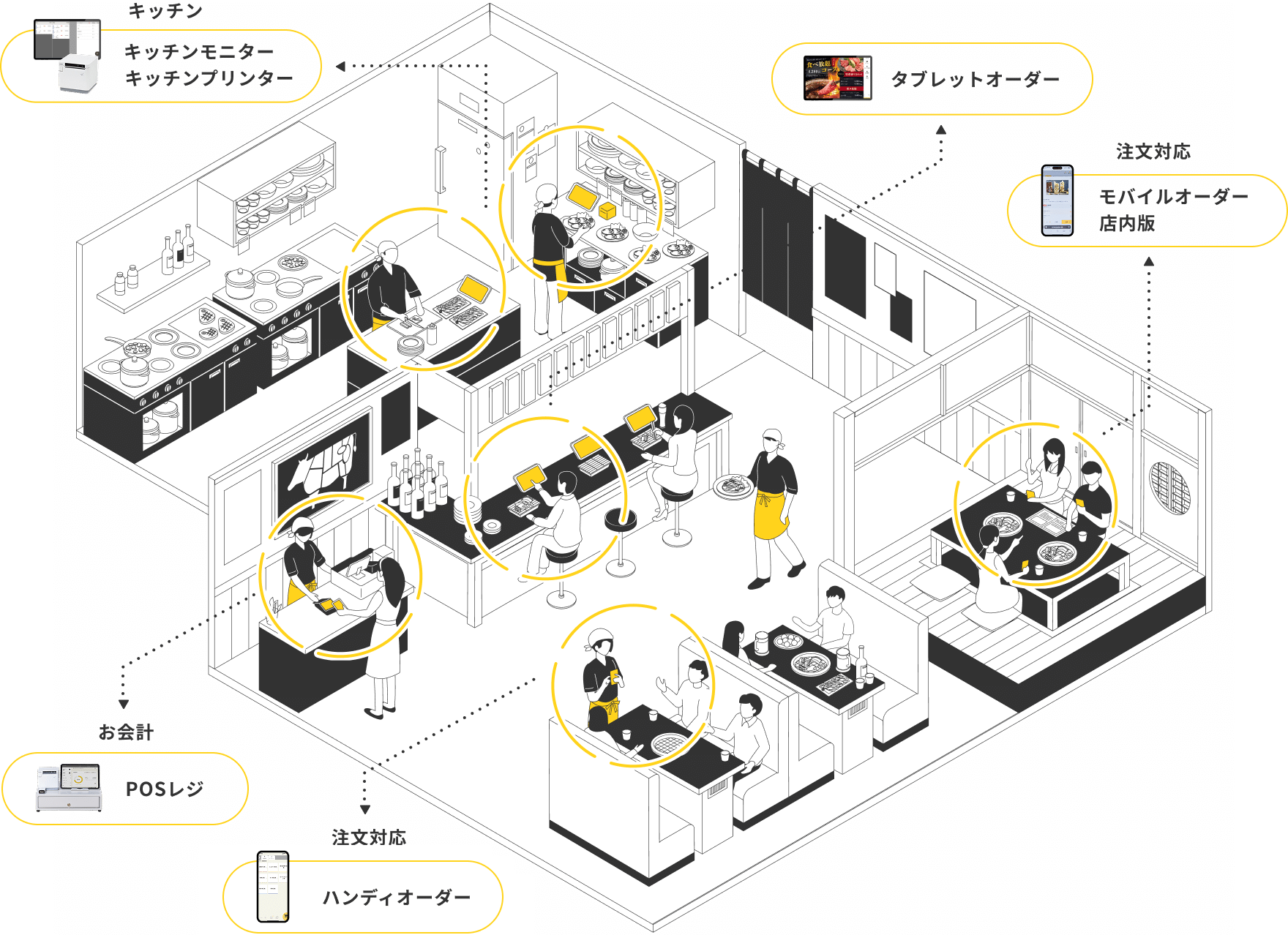 オペレーションを最適化できるハンディやセルフ/テーブルオーダー連携で注文を即時にキッチンへ送信。